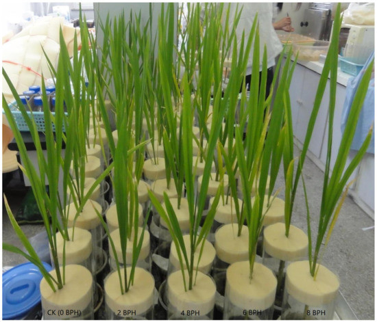 The variety of rice was Wuyujing 7 which was round-grained rice. The rice plants at tillering stage were transplanted into plastic cups (diameter 84 mm, height 100 mm), and then kept at a constant temperature room (27 °C, light:dark = 12 h:12 h). BPHs were collected from rice fields in Nanjing, China and reared in a growth chamber at 27 °C, light:dark = 12 h:12 h using rice seedlings.