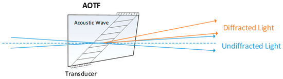 In the spectral region, an AOTF spectrometer is a type of imaging spectrometer that is different from the traditional prism and grating. An AOTF is an excellent dispersion element with the advantages of stability and a no-sweep mechanism. At present, the AOTF spectrometer is applied to many fields, such as deep space [4,5,6], the spectrometric study of plants [7,8], atmospheric monitoring [9], and security [10].