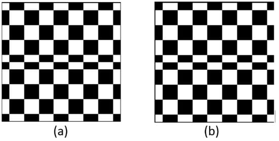 Original Hadamard mask and its inverse: (a) the original Hadamard mask and (b) the inverse of (a).