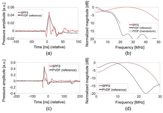Here, the CNT-PDMS transmitter was designed and fabricated to have a frequency bandwidth of <30 MHz, which is relatively lower than the one reported elsewhere [33]. However, such a bandwidth is still wide enough for characterization of the SPFS and the reference hydrophone.