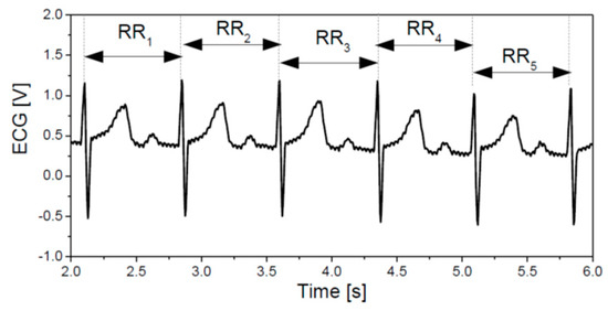 The signal in Figure 1 is an idealized version. The real signals may be distorted, and the majority of artifacts are a consequence of unprofessionally and possibly loosely attached sensors. In contrast to the patients in healthcare with sensors placed by trained medical staff, MCS subjects are freely moving, thus increasing the sensor-skin friction. Another source of artifacts is the software for heart rate (RR interval) detection.