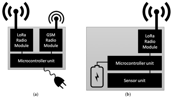 Architecture of (a) Gateway Node and (b) Sensor Node.