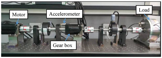 We used the experimental setup as shown in Figure 5 to collect testing data. In this setup, an accelerometer sensor mounted on the gearbox was used to acquire vibration signals with a sampling frequency of 1000 Hz, and then the collected signal data were transmitted to PC. During the data collection, we first set the initial speed of motor at , and then changed with an interval of to simulate a speed status change (i.e., ). The testing values of and were given as follows: