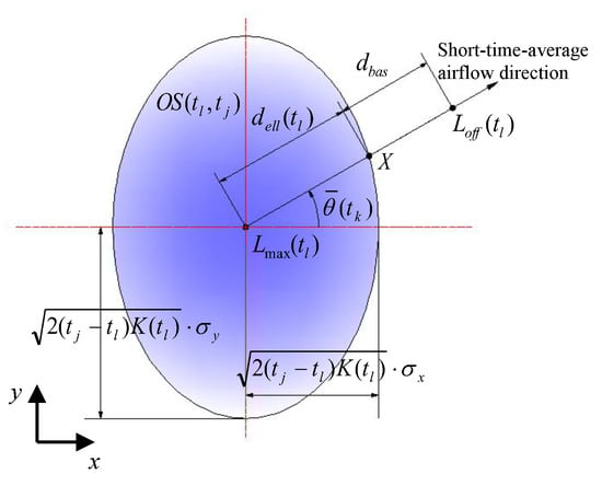 where , the variances of the airflow velocity, can be estimated online by the time sequence of the airflow, , , where and are the coordinates of the positions and , respectively, and is the distance traveled by the air mass carrying the chemical patch concerned during the period from time to .