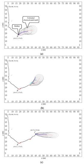 When a chemical patch is detected by the mobile robot at , its historical trajectory (i.e., the C-PP) can be estimated [] as