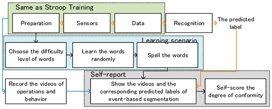 - There are three processes involved in learning scenario as shown in Figure 5. The order of words set randomly in advance was the same for each subject in each process.
