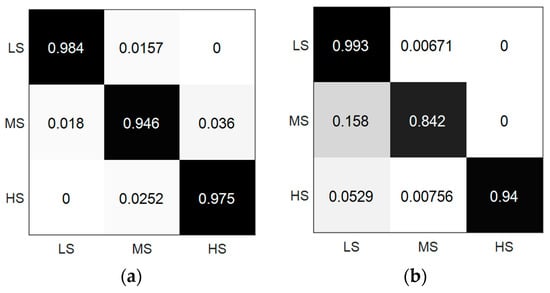 Additionally, there are some researches based on machine learning, where Oscar et al. [39] proposed a machine learning approach combining two sensor systems for use in stress detection, which achieved a 0.67 accuracy. It claimed that the results were affected by the large between-subject variances to stress. Lucio et al. [40] focused on the real-time detection of mental stress and achieved an 89.8% classification accuracy for the stress state and a 74% classification accuracy for the relaxation state, using the k-nearest neighbors algorithm (K-NN).