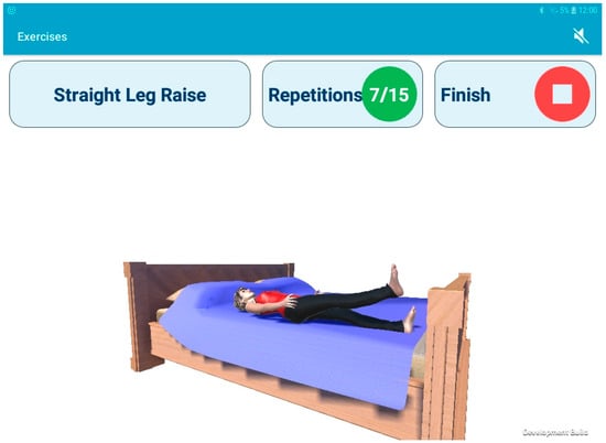 Screenshot of the Android tablet application during the straight leg raise exercise.