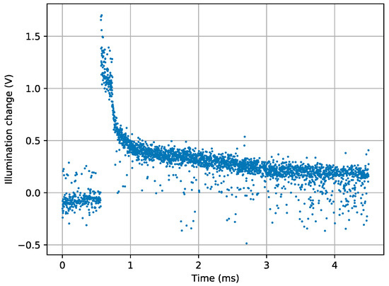 Illumination differences of 4000 pixels read in a period of 1.12 µs. The event (LED switching on) is introduced after Pixel 500 (0.560 ms).