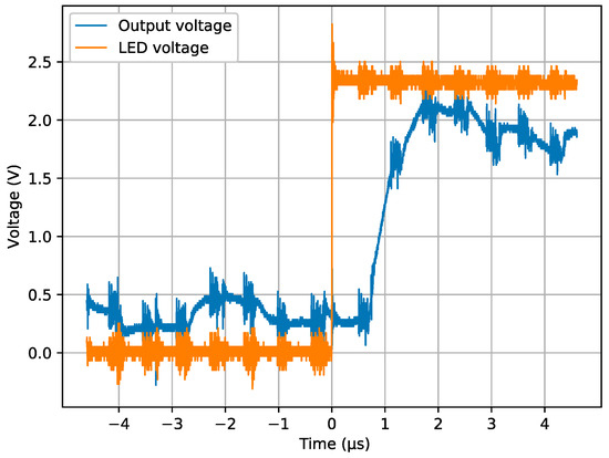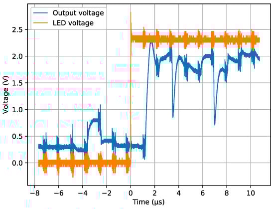 Output and LED voltages measured with a digital 1 GHz oscilloscope. Pixel-reading period is 1.12 µs.