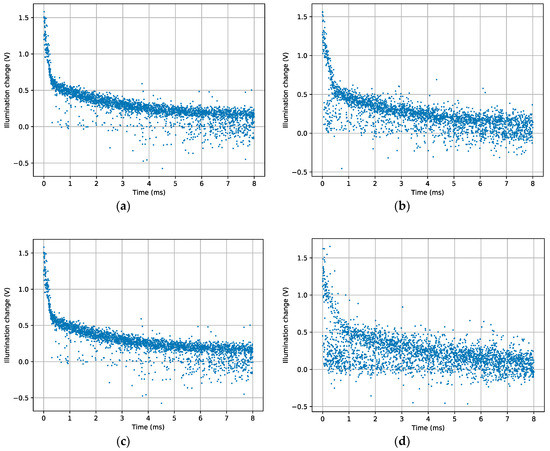 Illumination differences read with delays of (a) 0 s, (b) 10 s, (c) 20 s, and (d) 40 s after the event.