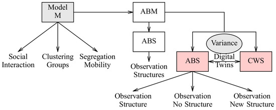 ABM is in principle the counterpart to analytical modelling and analysis. ABM addresses local interaction between agents posing emergence (the global behaviour), whereas analytical models often cover the mapping of individual behaviour on global behaviour directly (the hard-to-predict aggregate outcome) [6]. Analytical models are well established in social science and address both empirical and formal methods that pose their strength with respect to some of the fundamental analysis challenges in social science [7]. The main issue of analytical modelling, e.g., spatial analysis, is their limitation when it comes to covering a broad diversity in social models, i.e., addressing minor variances that occur in real-world systems [8]. This work demonstrates the introduction of the variance of real humans by crowd sensing integrated into the agent-based simulation. It could be shown that small local disturbances have a significant effect on global structures and that interaction is not covered by current analytical models. But ABM can rely on analytical micro-scale models, shown, e.g., by the Sakoda segregation model and the social expectation function (see Section 7).