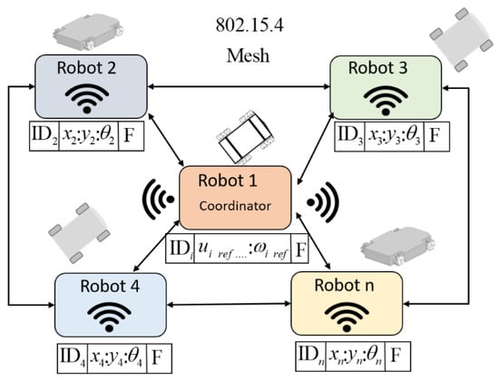 The encoding and size of packets sent to each robot depend on the type of mobile platform, while the feedback information has similar sizes. As a MESH configuration was used in this work, the robots were able to exchange all the information between them, whether they were the destination or not; they received it to process it or only as a rebroadcast node. This means that the robots exchange all the information of the system as transport nodes but only process the information of which they are the addressees.