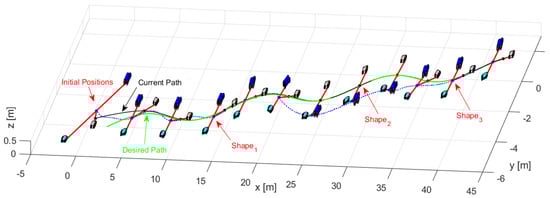Figure 20 shows how the movement of each robot evolves to comply with the desired shapes.