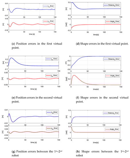 Figure 16 shows the errors of the formation (main objective - secondary objectives), i.e., the errors of the main point . In the same way, the errors of virtual parameters are denoted as .