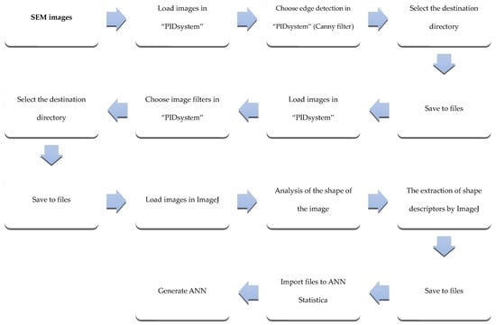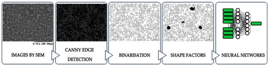 Scheme of the procedure to determine the shape factors to obtain a neural model based on scanning electron microscopy (SEM) images.