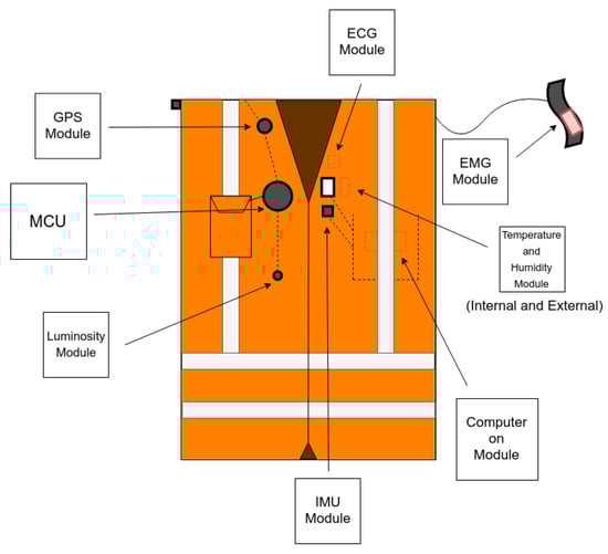 - Prototype development: This part will carry out wearable device manufacturing. Main Central Processing Unit (CPU) and hardware peripheral components will be physically connected, possibly using a final version of PCBs designed in the previous step. In the end, components can be attached to the garment; and