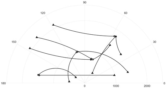 In this experiment, we set rad/s and m/s. The observation model is given as the bearing and range detection of the 2D vector with rad and m.