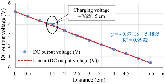 Relationship between distance and DC output voltage of the WPT.