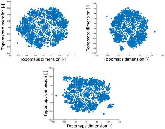 We applied the metric described in Equation (5) to two-dimensional space. Our two-dimensional space consisted of alternative distributions of topomaps/power spectra. The described algorithm iteratively minimizes the Kullback–Leibler divergence between high- and low-dimensional space probabilities (in our case, map/power spectra probabilities) [20]: