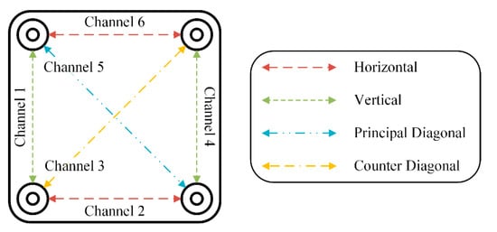 Simplified diagram of the wearable four-electrode electrocardiogram-sensor (WFEES) and its channels’ orientation.