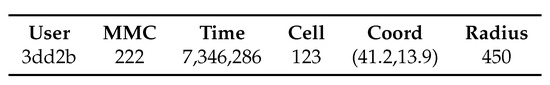 - Mamei, M.; Colonna, M.; Galassi, M. Automatic Identification of Relevant Places from Cellular Network Data. Pervasive Mob. Comput. J. 2016, 31, 147–158. [Google Scholar] [CrossRef]