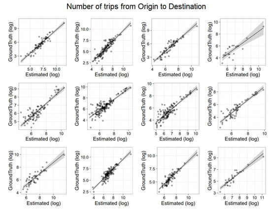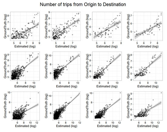 - Alexander, L.; Jiang, S.; Murga, M.; Gonzalez, M. Validation of origin-destination trips by purpose and time of day inferred from mobile phone data. Transp. Res. Part C Emerg. Technol. 2015, 58, 240–250. [Google Scholar] [CrossRef]