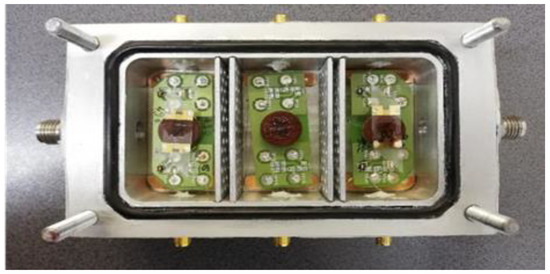 The SAW sensor was a ‘delay-line’ type, based on a quartz substrate (ST cut, X propagation, 10 mm wide, 38 mm long, 0.5 mm thick, and 3158 m/s velocity), cut in a parallelogram geometry to reduce the effect of SAW reflections from the edges of the piezoelectric substrate [25], with an oscillating frequency of about 69 MHz. The gold IDTs with ~150 nm thickness, were deposited using standard photolithographic techniques onto 10 nm thick chromium layers to ensure the adhesion of gold on the quartz. The IDTs have a ‘double-comb’ configuration, which consisted of 50 electrode pairs with a 2500 µm acoustic aperture and a 45.2 µm wavelength.