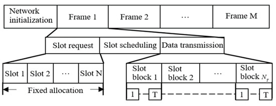 - The network initialization is mainly used to control clock synchronization and link establishment between the nano-controller and the nano-nodes. The nano-controller broadcasts the length of the single time slot and the total number of time slots in the slot application phase to the nano-nodes.