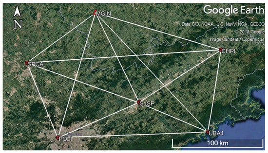 Most geodetic networks have been established using GNSS signals, which are available all over the Earth’s surface. They are defined by several materialized points with high precision and their co-ordinates serve as a basis in a wide variety of applications. Some examples are: support and basic control for surveying and mapping projects; implementation and maintenance of infrastructure works; monitoring of structural deformations; land cadastre and management; and monitoring of geodynamic events, such as earthquakes, landslides, and volcanoes. The study of Mt. Etna is a good example; two GNSS-based networks found a motion pattern of the active Nizzeti faults []. In addition, a geodetic network design was applied to find optimal ground locations for interferometric synthetic aperture radar (InSAR) devices [].