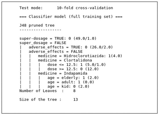Table 2 shows the executed actions, dates/times, locations with longitudes and latitudes, and users’ identifications. The dataset was made into a readable document by the WEKA data mining and machine learning tool [41]. By observing the data extracted in Table 2, we can determine the target attribute. For example, an observation based on the schedules described for each user makes it possible to check the entries in the residence and the opening of the medicine cabinet door. Both items of information together may infer that the medication was taken at a specific time.