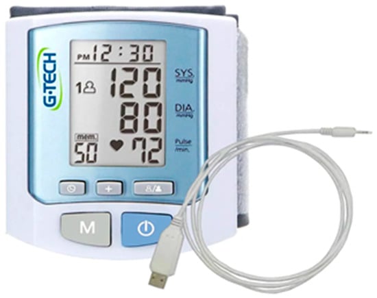 - Sato, H.; Koshimizu, H.; Yamashita, S.; Ogura, T. Blood pressure monitor with a position sensor for wrist placement to eliminate hydrostatic pressure effect on blood pressure measurement. In Proceedings of the 35th Annual International Conference of the IEEE Engineering in Medicine and Biology Society (EMBC), Osaka, Japan, 3–7 July 2013; pp. 1835–1838. [Google Scholar] [CrossRef]
