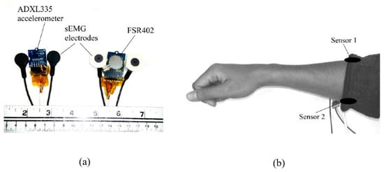 - Ogris, G.; Kreil, M.; Lukowicz, P. Using FSR based muscule activity monitoring to recognize manipulative arm gestures. In Proceedings of the 2007 11th IEEE International Symposium on Wearable Computers, Boston, MA, USA, 11–13 October 2007; pp. 1–4. [Google Scholar]