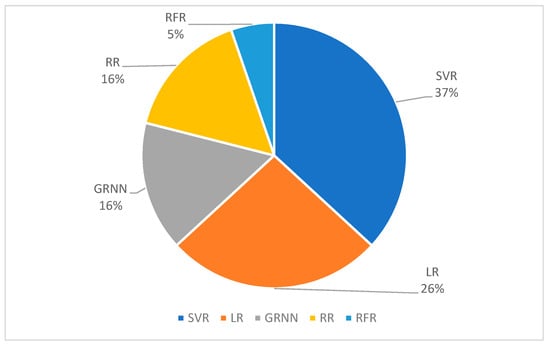 Percentages of the different regression algorithms reported in FMG literature (n = 19).