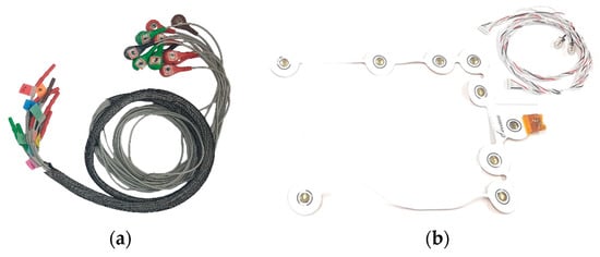 Our custom-made devices are compact and mobile; however, participants still reported discomfort during the experiment that was found to derive from the DIN 42802 snap-lead. The leads became twisted and because the line weighs over 150 g, including all channels (reference and bipolar), they are heavy to use over a long period. To compensate for this inconvenience, we considered a flexible printed circuit board (PCB), as illustrated in Figure 7b. This PCB is lighter in weight and twists less when used, which makes it considerably more convenient than the previous DIN 42802 snap-lead. In any case, both commercial and research parties continue to make great efforts to improve all aspects of electrodes (convenience, weight, cost, and mobility).
