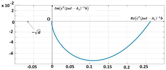 The pairs are controllable, respectively observable. The IOM sensor output without delays is given by (7). A control law (Equation (13)) (for = 0) with is applied. This control verifies the sector constraint (Equation (11)) with . The matrix R was considered as, where is Hurwitz stable. The vector and a matrix were inferred with . The polar plot of is shown in Figure 6. The closed-loop system satisfies the frequential criterion (Equation (17)), condition (18) is verified for MATLAB/SIMULINK and techniques based on the Mittag-Leffler functions are used for the simulation [1,2]. Figure 7 shows the trajectories of fractional order variables.