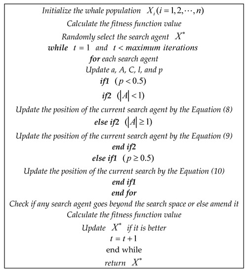 The pseudo code of the whale-optimization algorithm is shown in Figure 1: