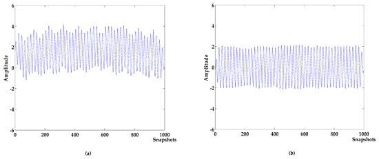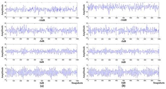 Due to the influence of the marine environment and human activities, the noise intensity of the underwater acoustic signal is variable. To simulate this situation, the simulated signal consists of the target signal and the baseline drift signal and Gaussian white noise of different decibels, as shown in (16):