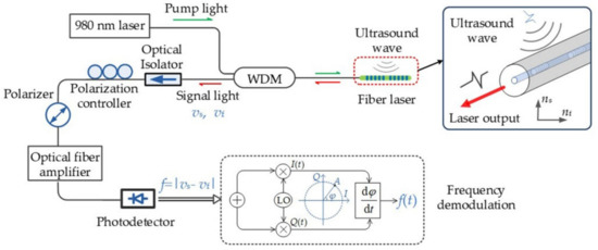 Ultrasound wave detection and signal demodulation based on the fiber laser sensor. Figure adapted with permission from Ref. [43].