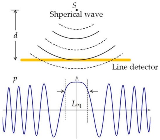 Schematic of the fiber laser sensor as an ideal line detector. A point source emits a spherical wave and the detected acoustic pressure distribution along the line detector. Figure adapted with permission from Ref. [45].