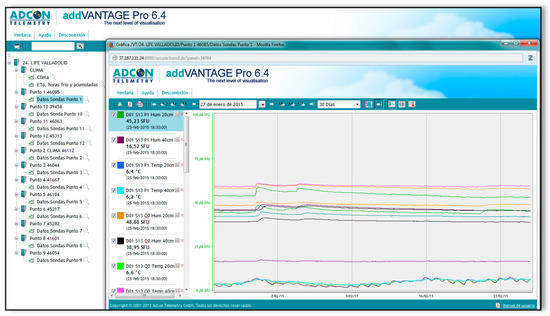 Example of the web-based data-fusion system in which records from the soil sensors and from atmospheric observations are synchronized every 30 min.