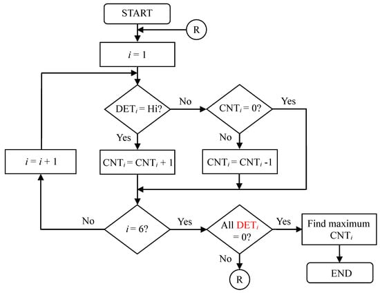 In turn, the algorithm detects whether the DETi of each microphone is high. If it is high, the corresponding counter variable starts counting; otherwise, it decreases by one if the counter variable value is not zero.
