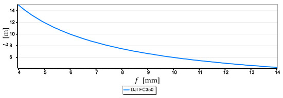 Mean error of measurement as a function of focal length of the DJI FC350 camera ().