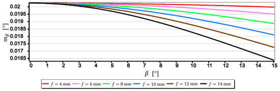 Figure 20 presents the graph of the mean error of measurement error as a function of the focal length mean measurement error for the horizon slop angle β = 5° (a description of the methods and accuracy of focal length measurement can be found, among others in [27,28,29,30]).
