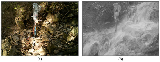 It is therefore essential to collect high spatiotemporal resolution data on the hydrological state of temporary streams. However, because monitoring temporary streams is difficult due to their flashy and erosive nature, often high sediment loads, and limited accessibility [3,23], this kind of data remains sparse. Conventional methods to monitor perennial streams, including stream gauges, current meters, and pressure transducers, are generally less practical and cost-effective for high spatiotemporal resolution monitoring of the hydrological state of temporary streams [35]. Several studies have monitored the changes in the hydrological state of temporary streams by mapping the extent of the streams through direct observation. This is laborious and logistically challenging [29], especially during rainfall events when conditions change quickly [26,28]. Most of these mapping studies are therefore limited to describing seasonal changes in stream network dynamics [29,36,37,38]. Other mapping methods include aerial photography [39,40], LiDAR data [41], and unmanned aerial systems [42]. Aerial photography and LiDAR data can provide information for large areas, but, due to high costs, are unsuitable for continuous monitoring. Furthermore, they can only be used in catchments where the wet channel is exposed and of a certain dimension. This excludes forested catchments and small headwater streams. Unmanned aerial systems have the potential to be more cost-effective and provide higher resolution data but are equally ill-suited for temporary stream monitoring in densely vegetated catchments. In addition, operation might be problematic during intense rainfall events.