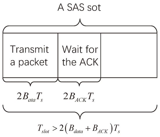 - In the initial stage, nano-nodes operate the time slot allocation procedures, they set their first time slots as RBSs, and allocate one SAS by their own IDs according to Equation (1), and set the other time slots as SSs.