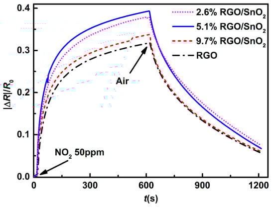 As a matter of fact, more active adsorption sites means a more difficult desorption of NO molecules adsorbed on the RGO/SnO composite film, which leads to a worse baseline drift [].