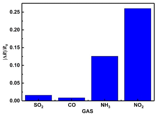 Nitrogen dioxide (NO), a well-known toxic and harmful gas with a pungent odor, is a prominent air pollutant and one of the main causes of acid rain. It mainly comes from automobile exhaust and factory emissions, which is usually harmful to human beings, animals and plants. Approximately 10–20 ppm NO can cause mild irritation of the nose and throat, and concentrations above 50 ppm are considered dangerous to man for short exposures [,]. Therefore, the detection of low concentrations of NO with high sensitivity at room temperature is highly desirable.