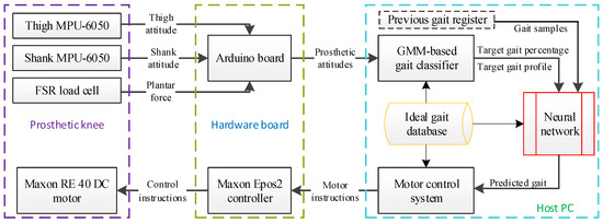 In order for the prosthetic knee to follow the thigh motion of the amputee, this paper proposed a novel neural-network-based gait database matching method to achieve the specific control, as shown in Figure 8.