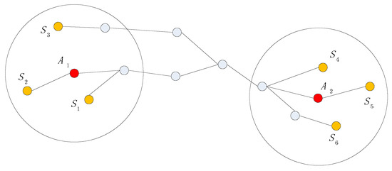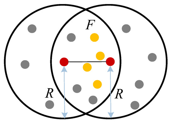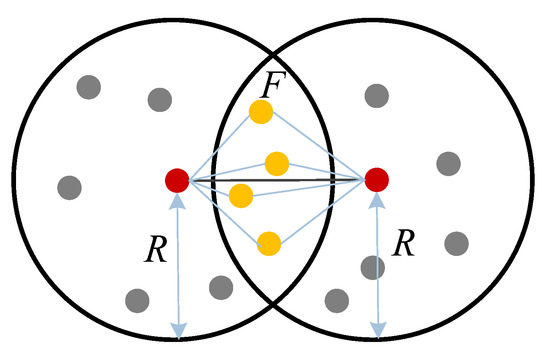 Figure 1, the red points are the two nodes to be located. They are beyond communication range but can communicate through another one node which is denoted by yellow points.